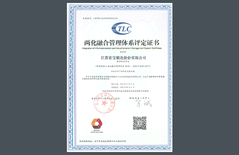 兩化融合管理體系評定證書
